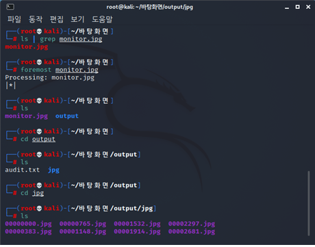 바탕화면으로 이동한 뒤 foremost를 진행해주었다.