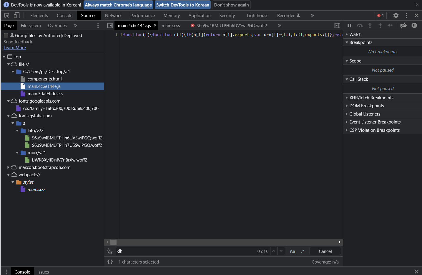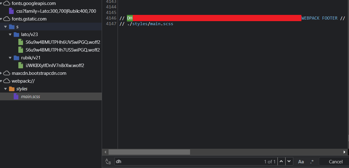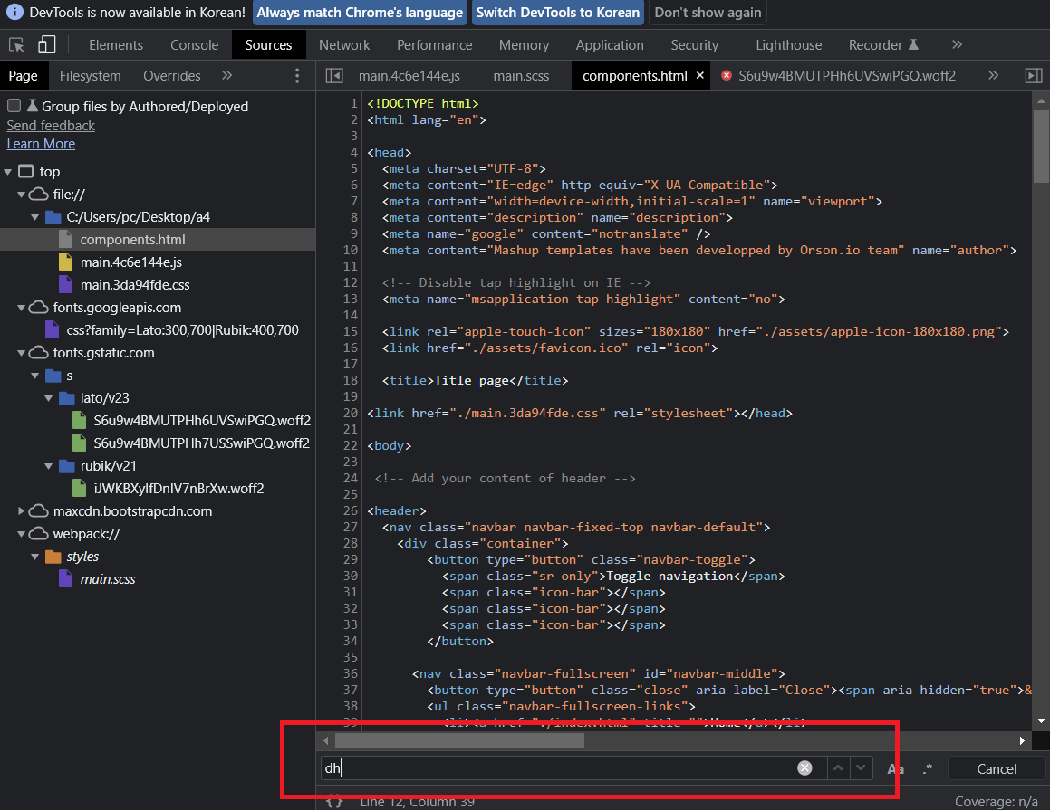 개발자 도구에서도 Ctrl + F 가 가능했다. 당연히 html, css, js에 있을 거라는 강박에 갇혀 문제를 보지 못했다.