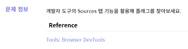 코드를 읽다가 말고 힌트를 찾기 위해 다시 문제로 돌아왔고, 개발자 도구의 Sources 탭을 이용하기로 했다.